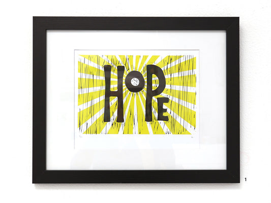 Hopeful Yellow Sunburst Letterpress Print (11x14 matted)